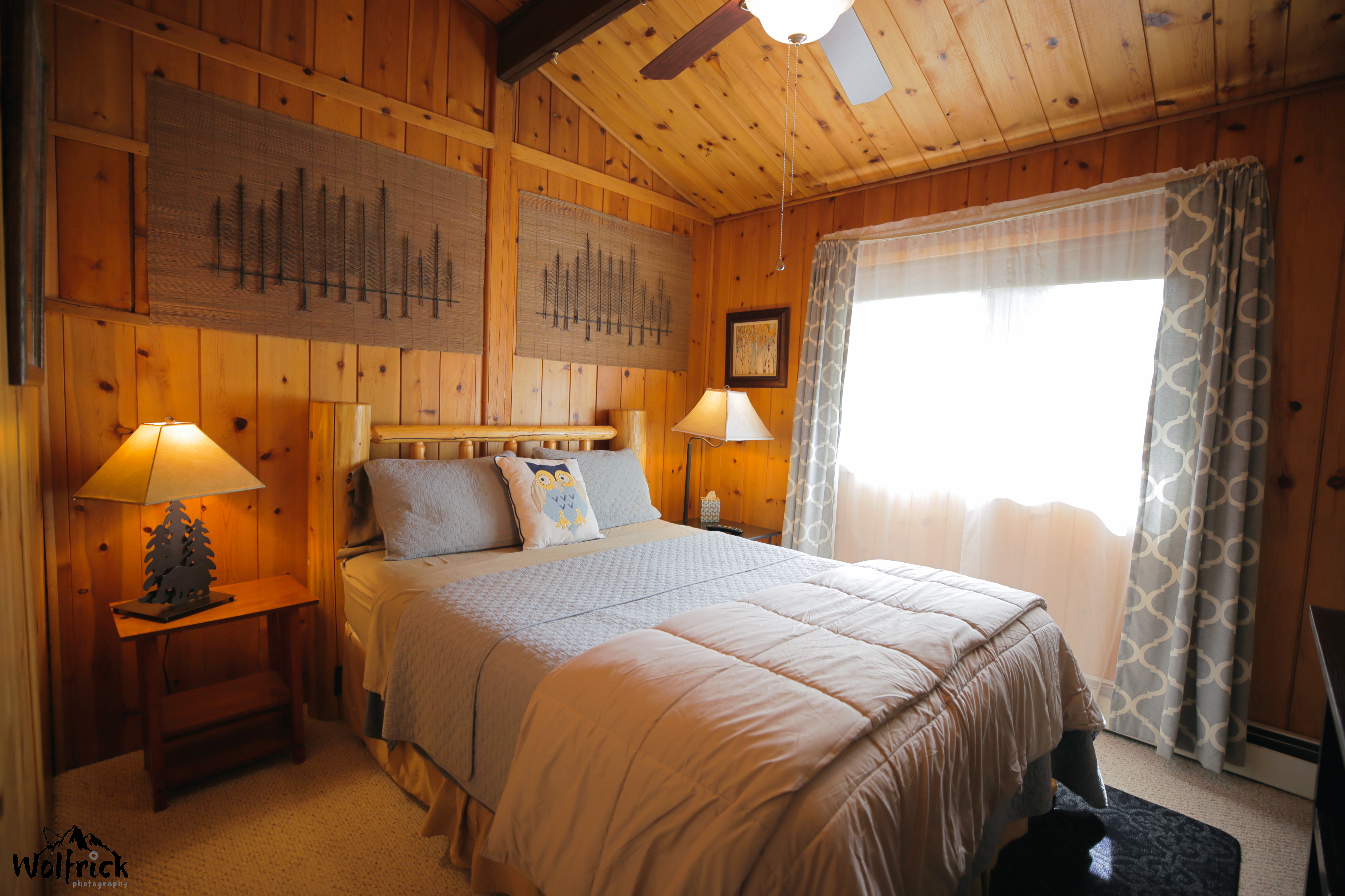 You’ll enter a small hallway, then on the right, room #2 has a QUEEN bed, straight ahead is the bathroom, and on the left is room #3 that has two TWIN beds. .